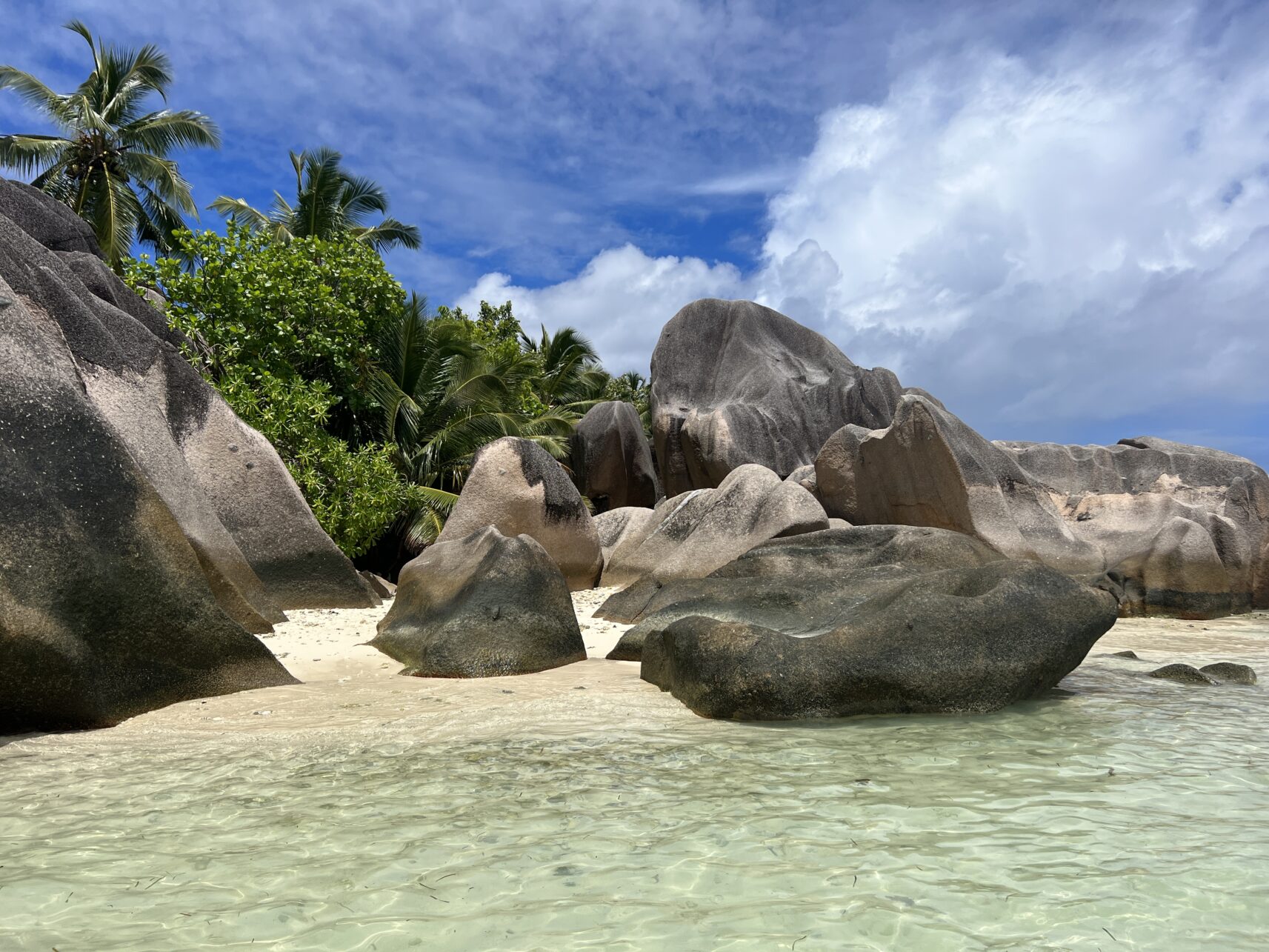 Let me start with what makes these islands so visually unique: the light-colored beaches with their dark granite rocks.