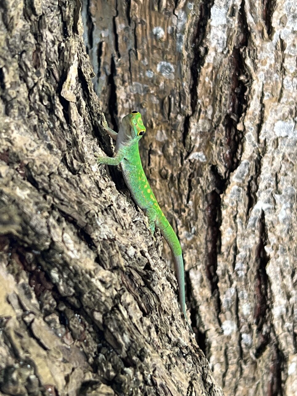 And when it creeps and crawls around you, it’s either the green Seychelles day-geckos or crabs.