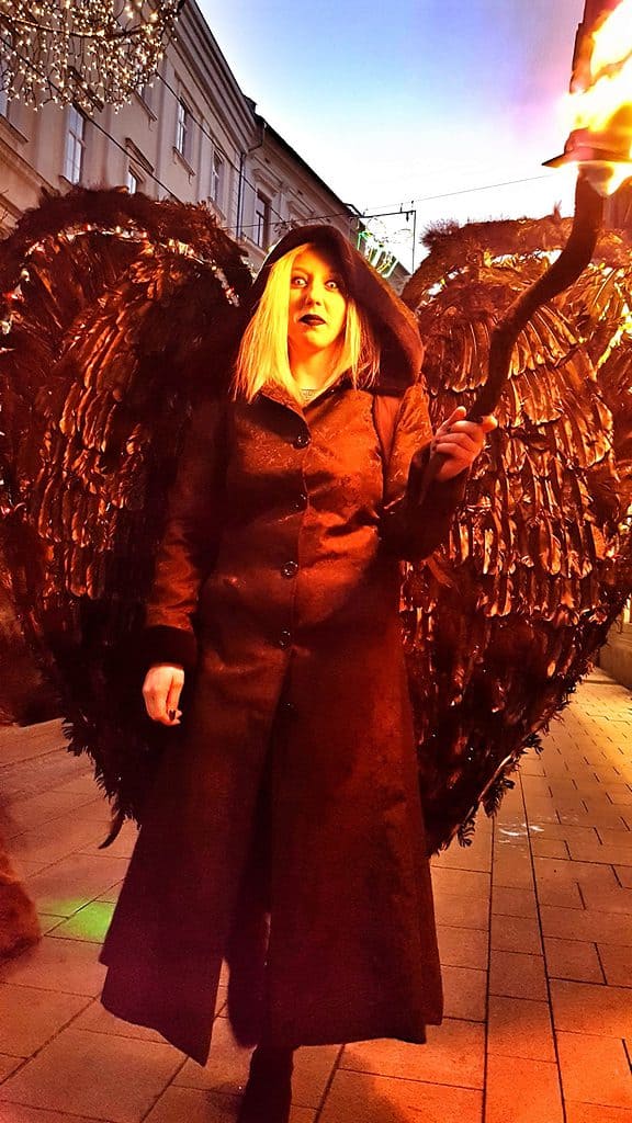 The Perchten and the angels made their appearances during the Krampuslauf in white or black feathers/wings and dresses. The Perchten are typically a group of women who roam the streets in brown wooden masks and sheepskin warding off the evil and saving the children from Krampus. They also often have their own day of celebration around the winter solstice and the 6th of January, but have been known to make an appearance at many Krampuslaufen around Austria in recent years.
