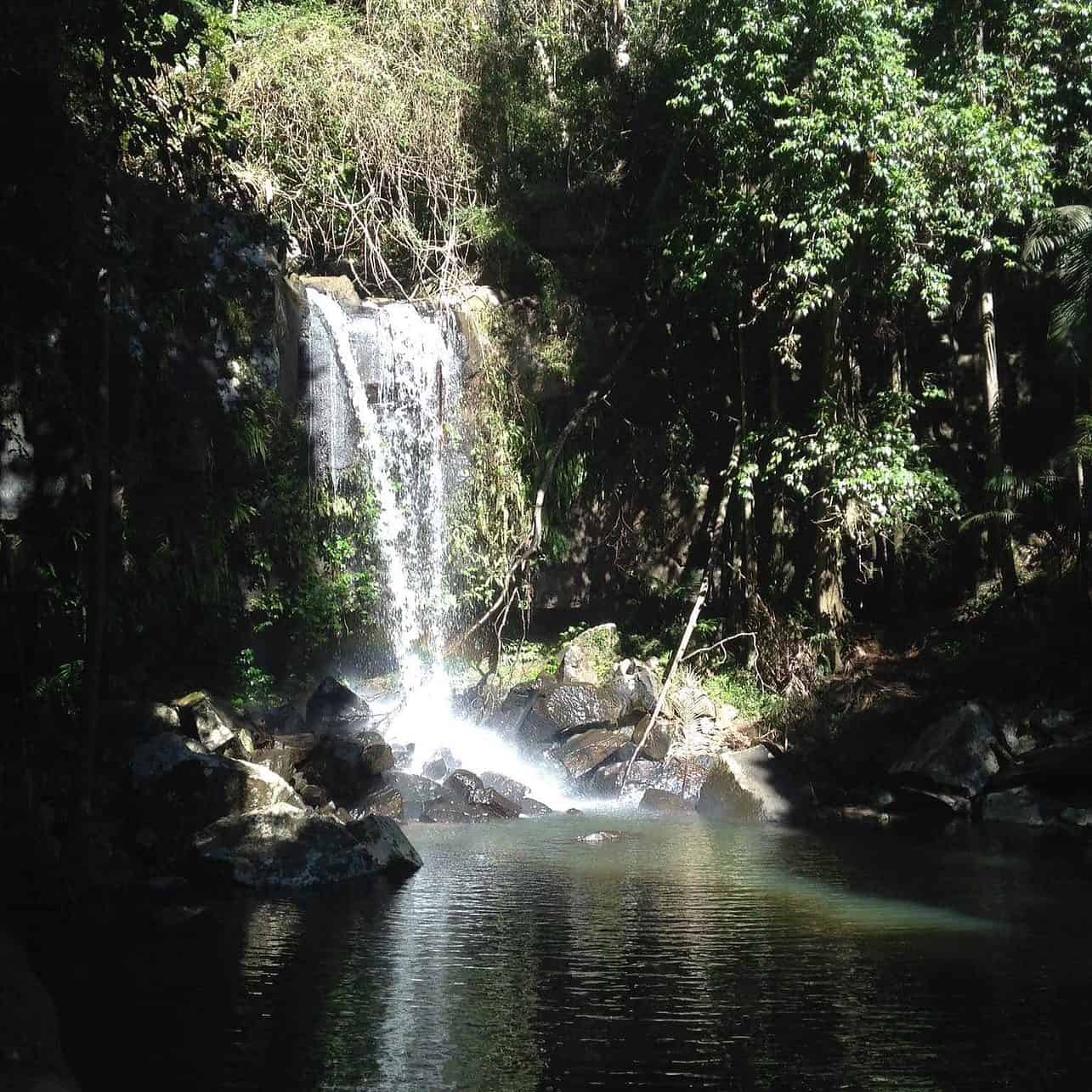The walk and the tracks themselves are not too bad to start with as it’s a gradual climb weaving in and out of the rainforest. Getting to the top and the final 50 metres, however, does require pulling yourself up a stone wall and helping yourself by using a chain. It can be a little challenging if you are a bit less able.