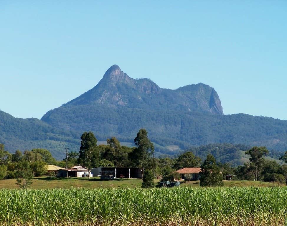 A mountain in the Tweed Range in the Northern rivers region of New South Wales Australia. It was formed from a volcanic plug of the now-gone tweed volcano. The mountain is located 14 kilometres south west of Murwillumbah near the border between New South Wales and Queensland. Lieutenant James Cook saw the mountain from the sea and named it Mount Warning.