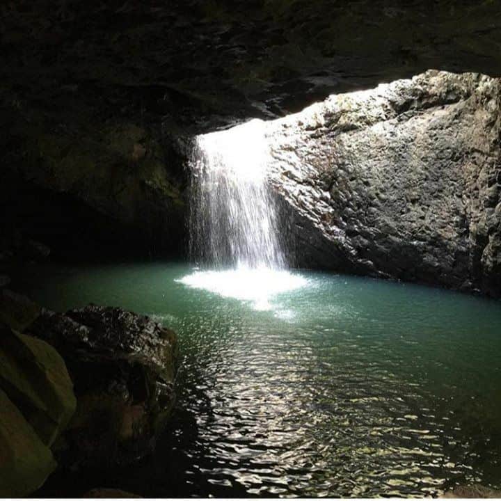 The Natural Bridge lies in the Springbrook National park, a naturally formed rock arch over Cave Creek. The creek came from a waterfall which cut a cave beneath the waterfall and formed a pothole on top until the two joined and the creek flowed through the cave, leaving an arch across the front.