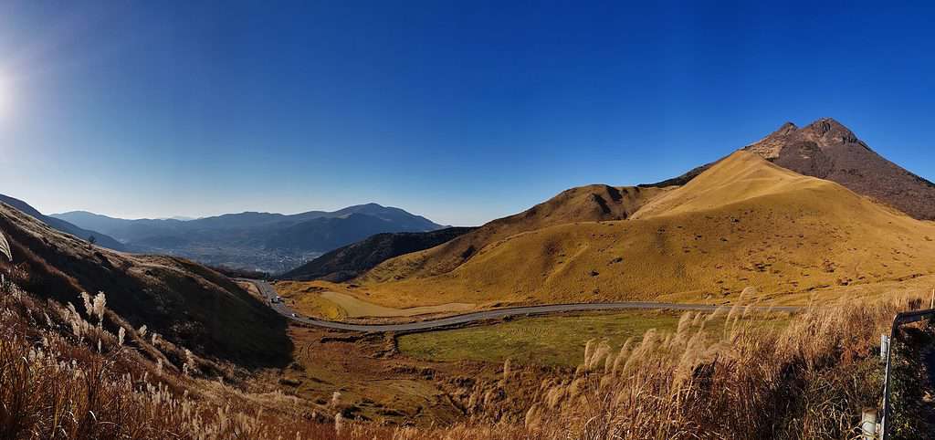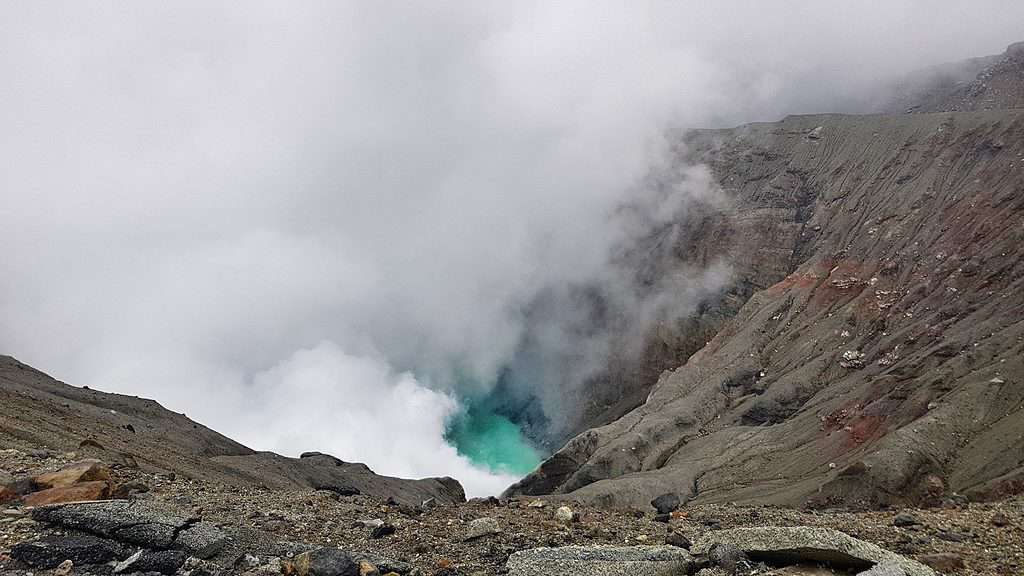 Mount Aso is an active volcano and the mountain’s active volcanic peaks include Mount Nakadake, Komeduka, Kusasenri and Daikanbo crater.