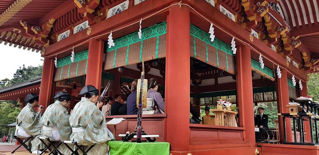 The hall also includes a museum which displays a selection of masks, swords, ancient documents and other treasures. Be sure to check out the large and impressive display of donated sake barrels that can be found on display next to the steps. During my visit I was lucky enough to witness a wedding ceremony taking place at the shrine. It’s a popular attraction in the city to explore for sure.