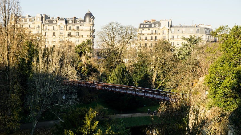 There’s no doubt that a city trip to Paris can keep you busy for days, but we all need a little time to wind down. A visit to Buttes-Chaumont Park is a must in your Paris itinerary, in any season! The Parc des Buttes-Chaumont is a gorgeous 24 hectare park located in the North-East area of Paris. The entire park actually sits on top of a quarry which allows for a breathtaking stroll through the park. On the perimeter of the park (the top of the quarry) you’ll find some of the cities most spectacular aerial views, especially if you plan on enjoying the sunset there. In the middle of the quarry, you’ll find a suspension bridge overlooking a beautiful lake and a waterfall that flows through a cave. You can actually hike down the steps to the bottom of the quarry and enter the caves to see where the waterfalls hits bottom.